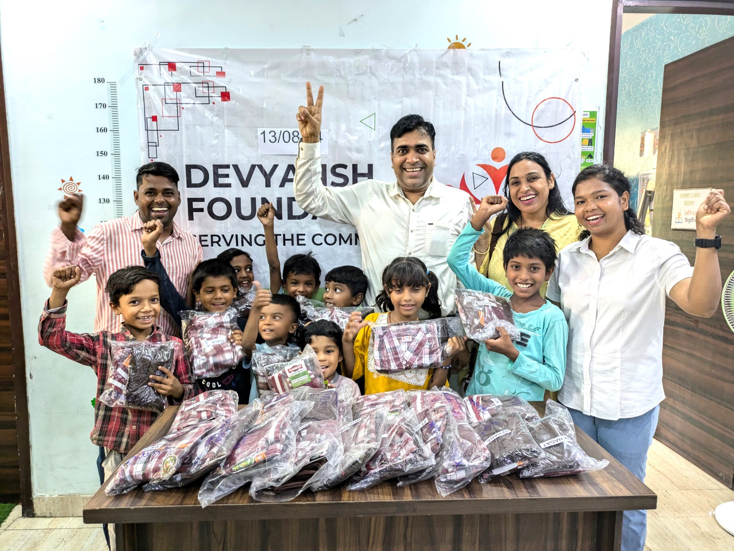 Devyansh Foundation conducted the distribution of school uniforms to underprivileged children, on 13 Aug 2024.